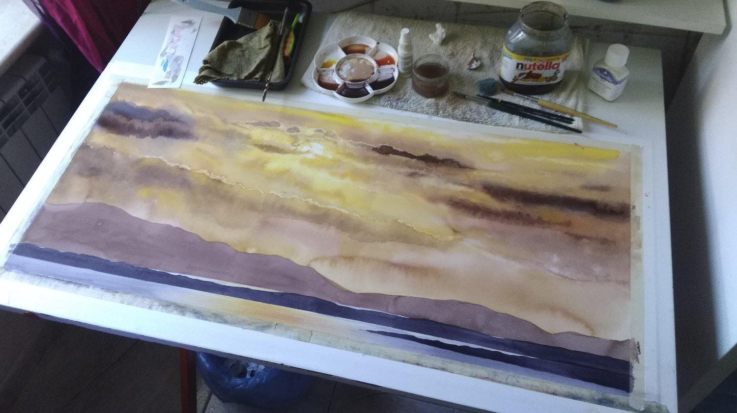 La tecnica dell’Acquerello consente di fluttuare nelle forme e tessiture create dal pigmento finissimo, che liberamente scorre nell’acqua; le forme, così, vengono esaltate dalle pennellate più ferme, posate in questo caso sul foglio asciutto. La trasparenza e la leggerezza di questa tecnica, porta con sé la necessità di andare oltre la realtà esterna.