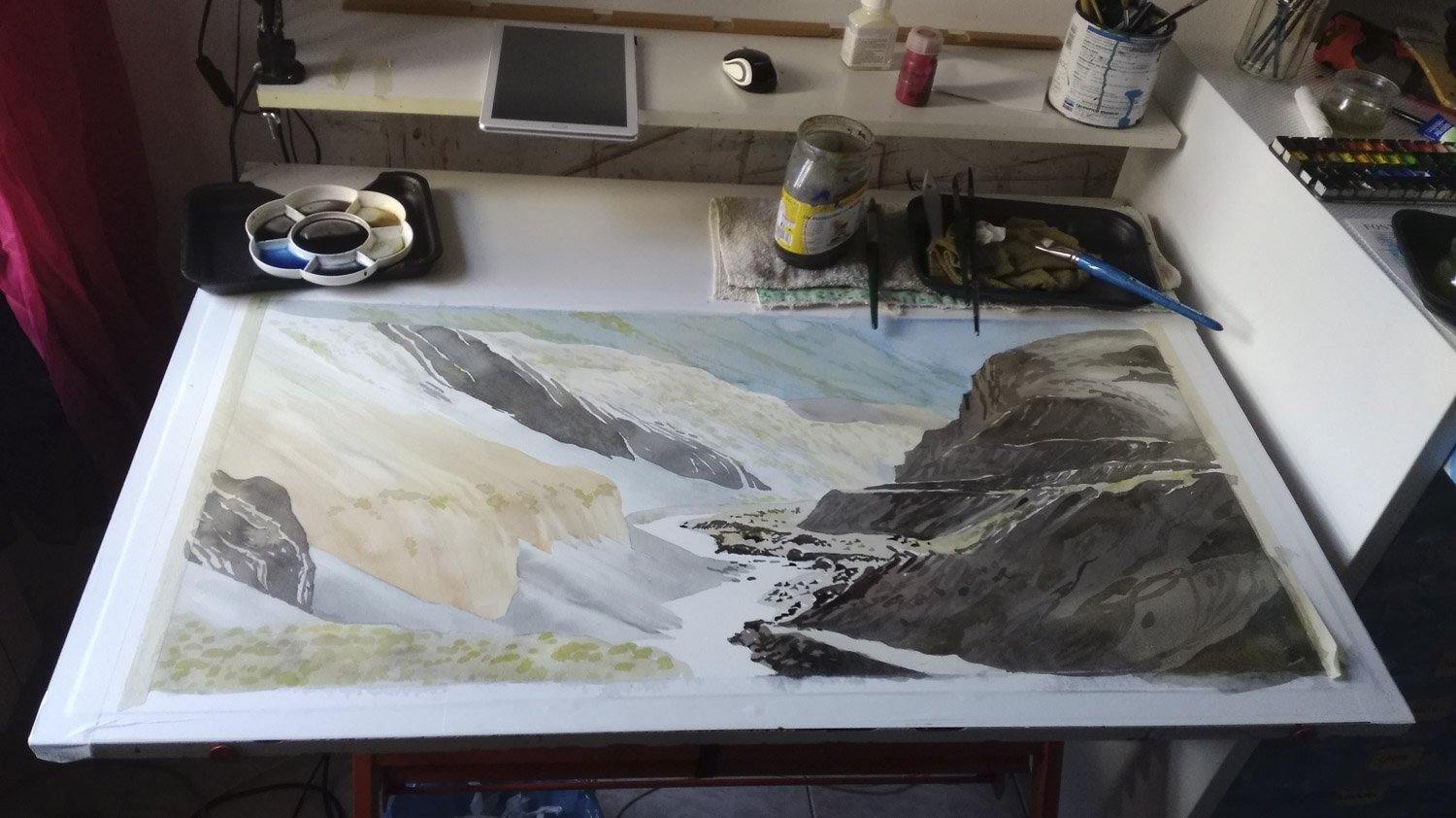 La tecnica dell’Acquerello consente di fluttuare nelle forme e tessiture create dal pigmento finissimo, che liberamente scorre nell’acqua; le forme, così, vengono esaltate dalle pennellate più ferme, posate in questo caso sul foglio asciutto. La trasparenza e la leggerezza di questa tecnica, porta con sé la necessità di andare oltre la realtà esterna.